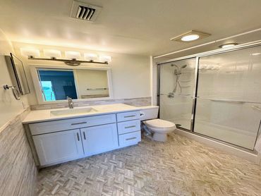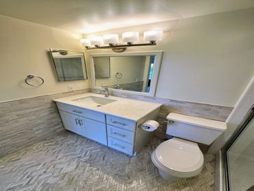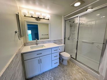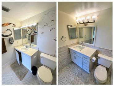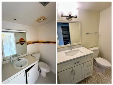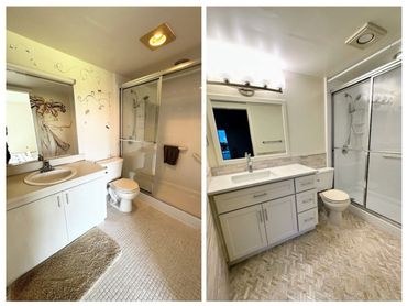 In this highlight video, we showcase a stunning bathroom makeover in Wynmoor. Despite the limited space, we maximized functionality and aesthetics by incorporating new cabinets with additional storage, replacing the floor tiles, and adding a matching mosaic backsplash. The upgraded lighting and accessories further enhance the overall appeal, making the bathroom both more functional and visually pleasing.
